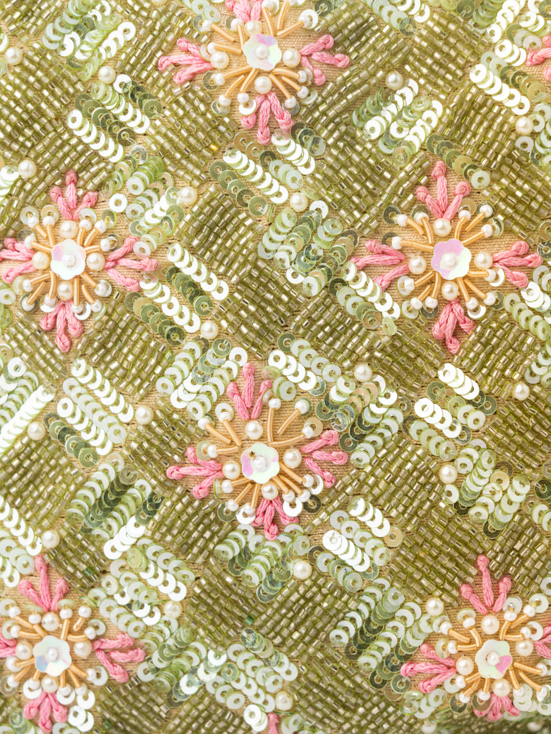 NR By Nidhi Rathi White Green Embroidered Potli Clutch