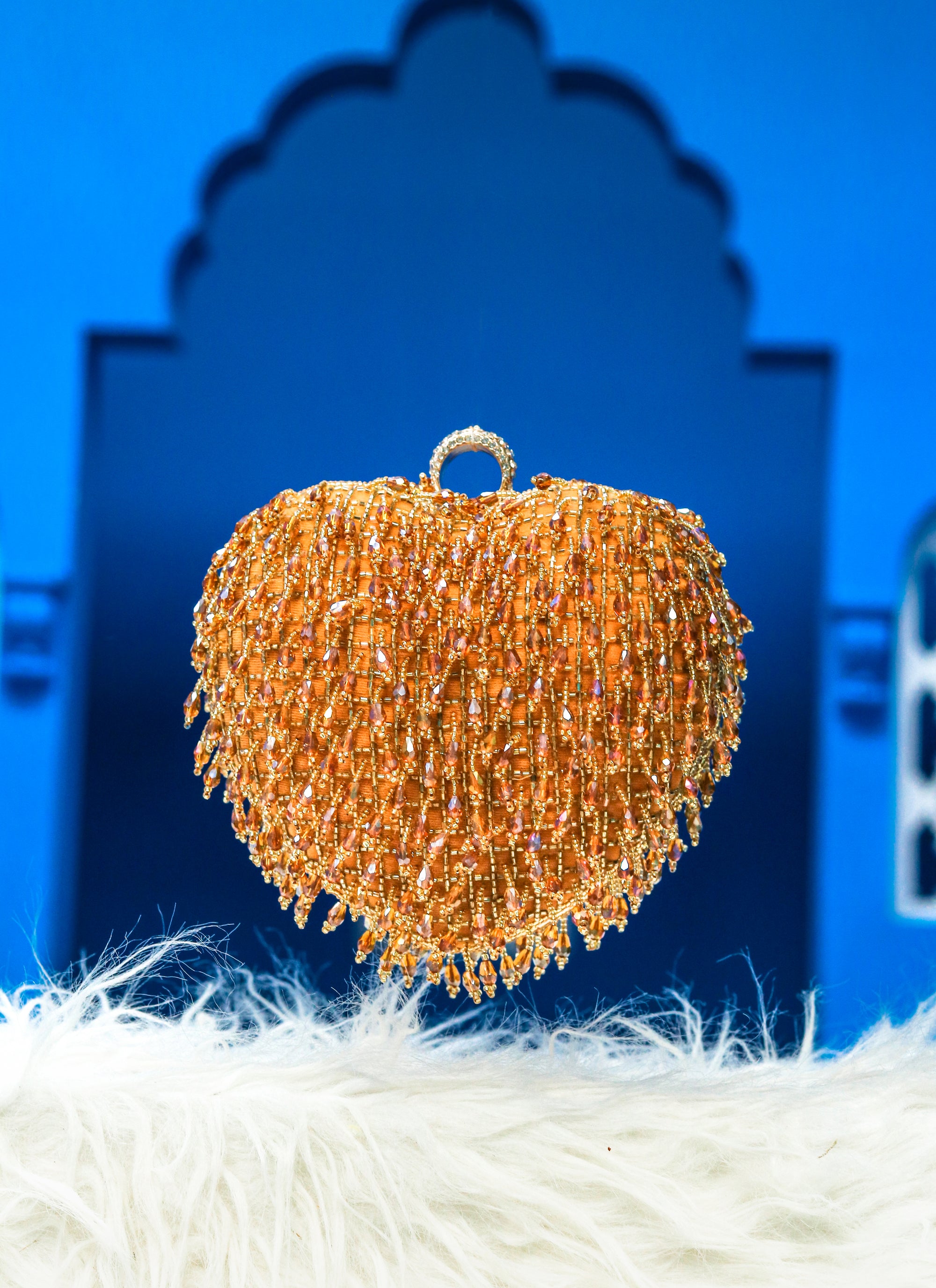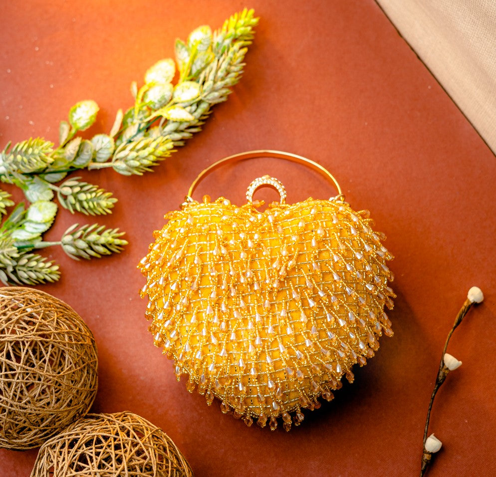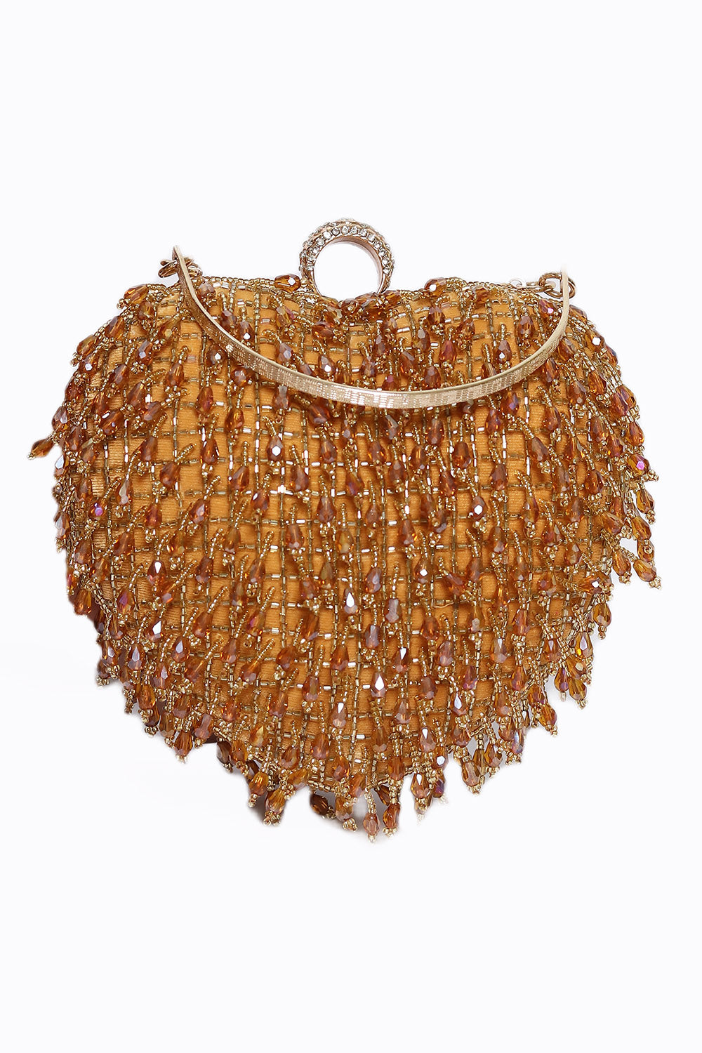 NR By Nidhi Rathi Women Gold-Toned Embroidered Tasselled Box Clutch