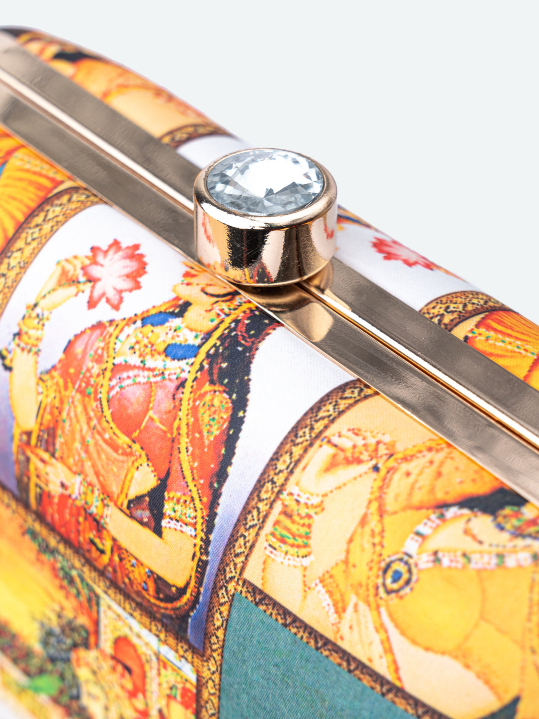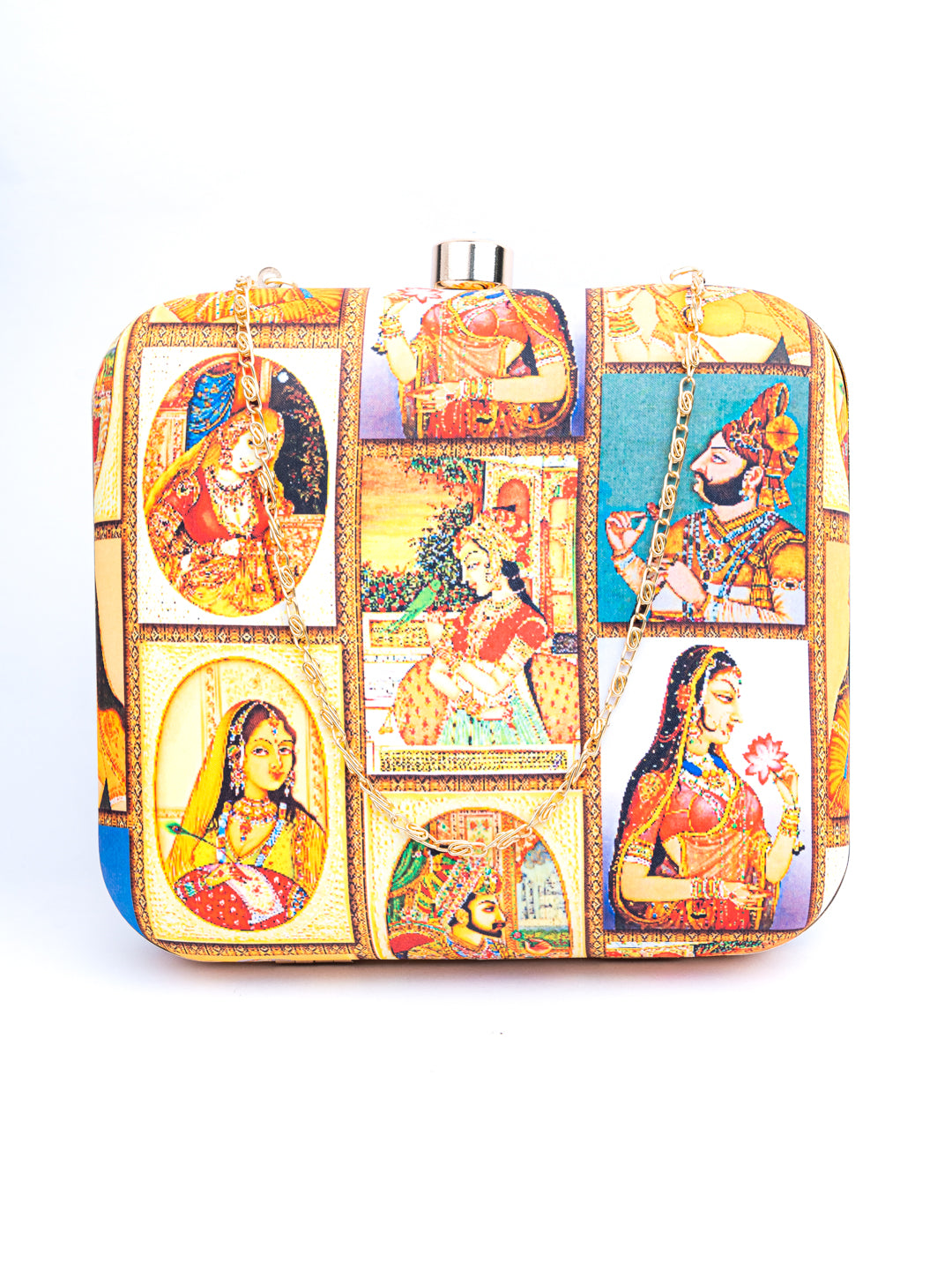 NR By Nidhi Rathi Yellow Orange Printed Box Clutch