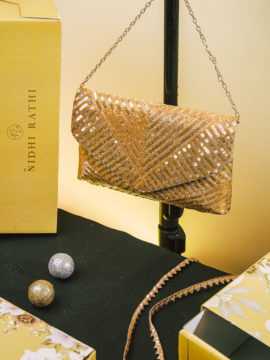 NR Golden Sequin Flap Bag
