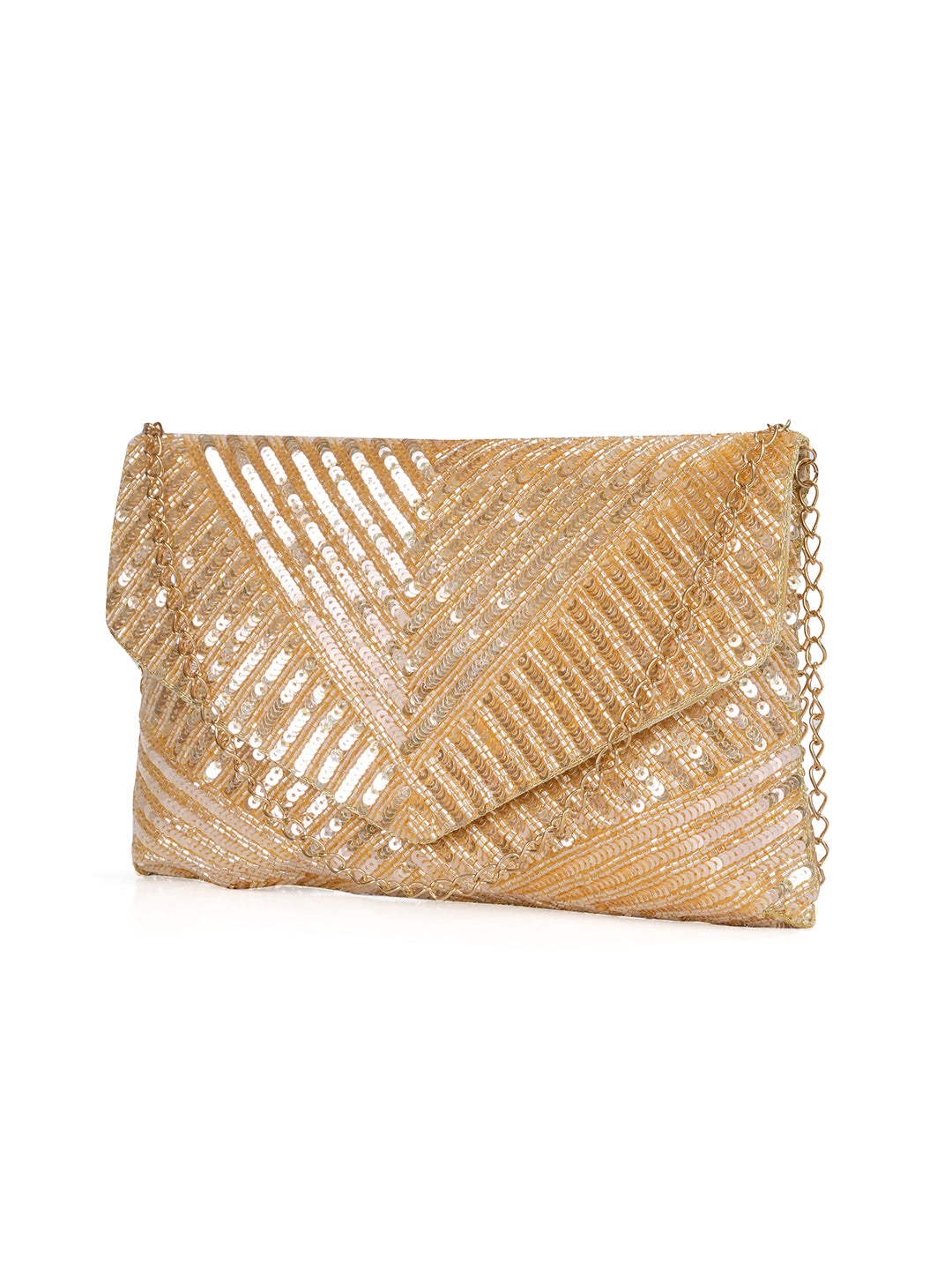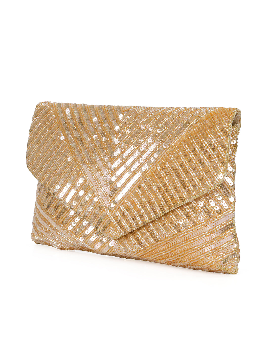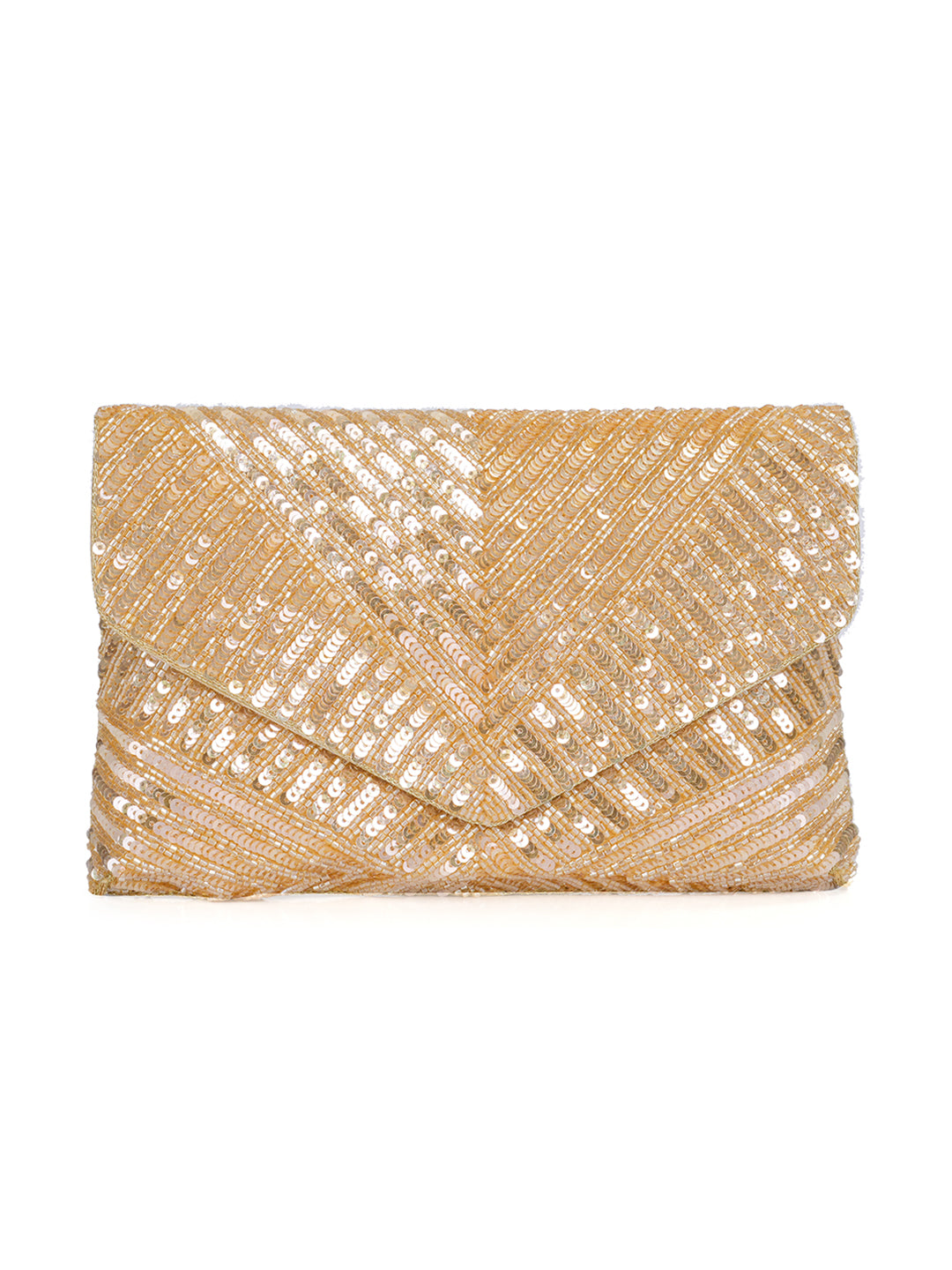 Gold-toned embellished envelope clutch