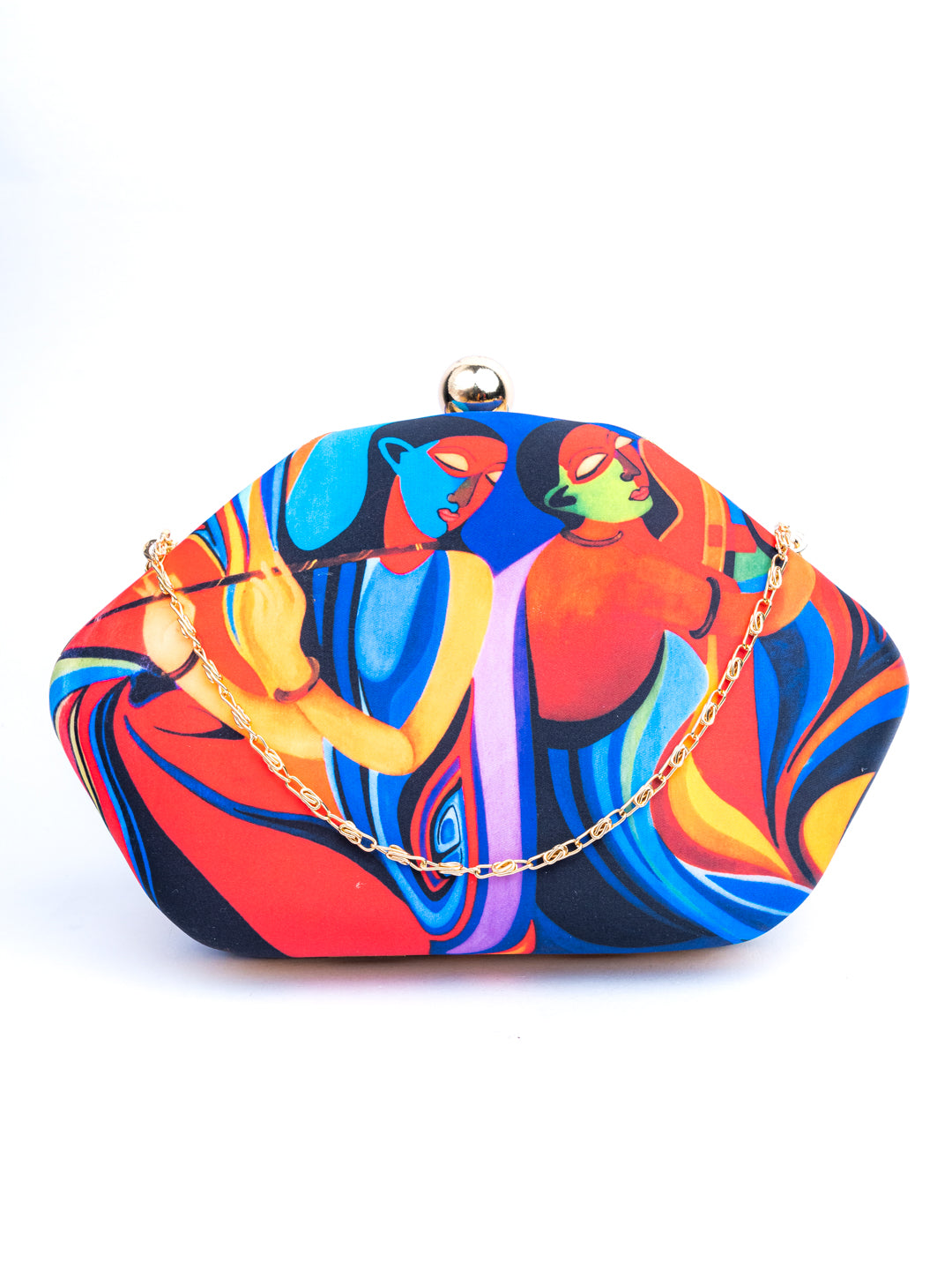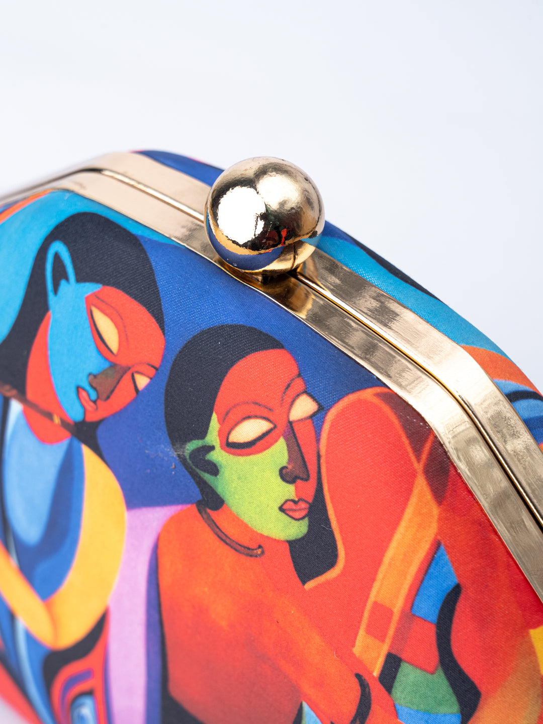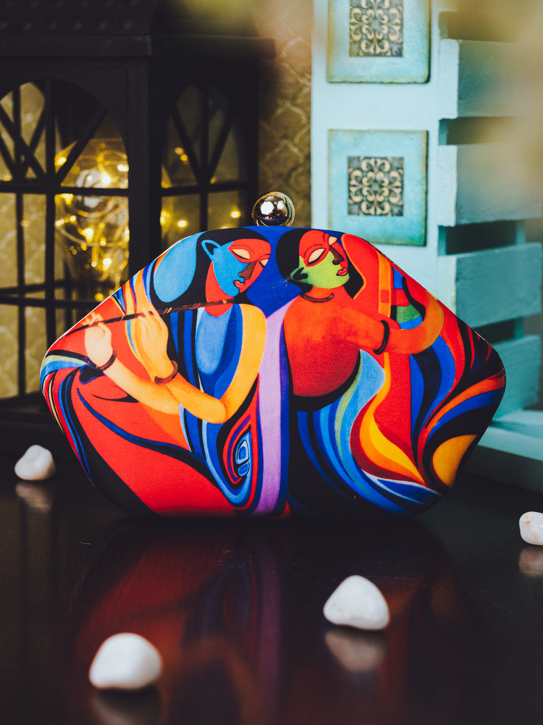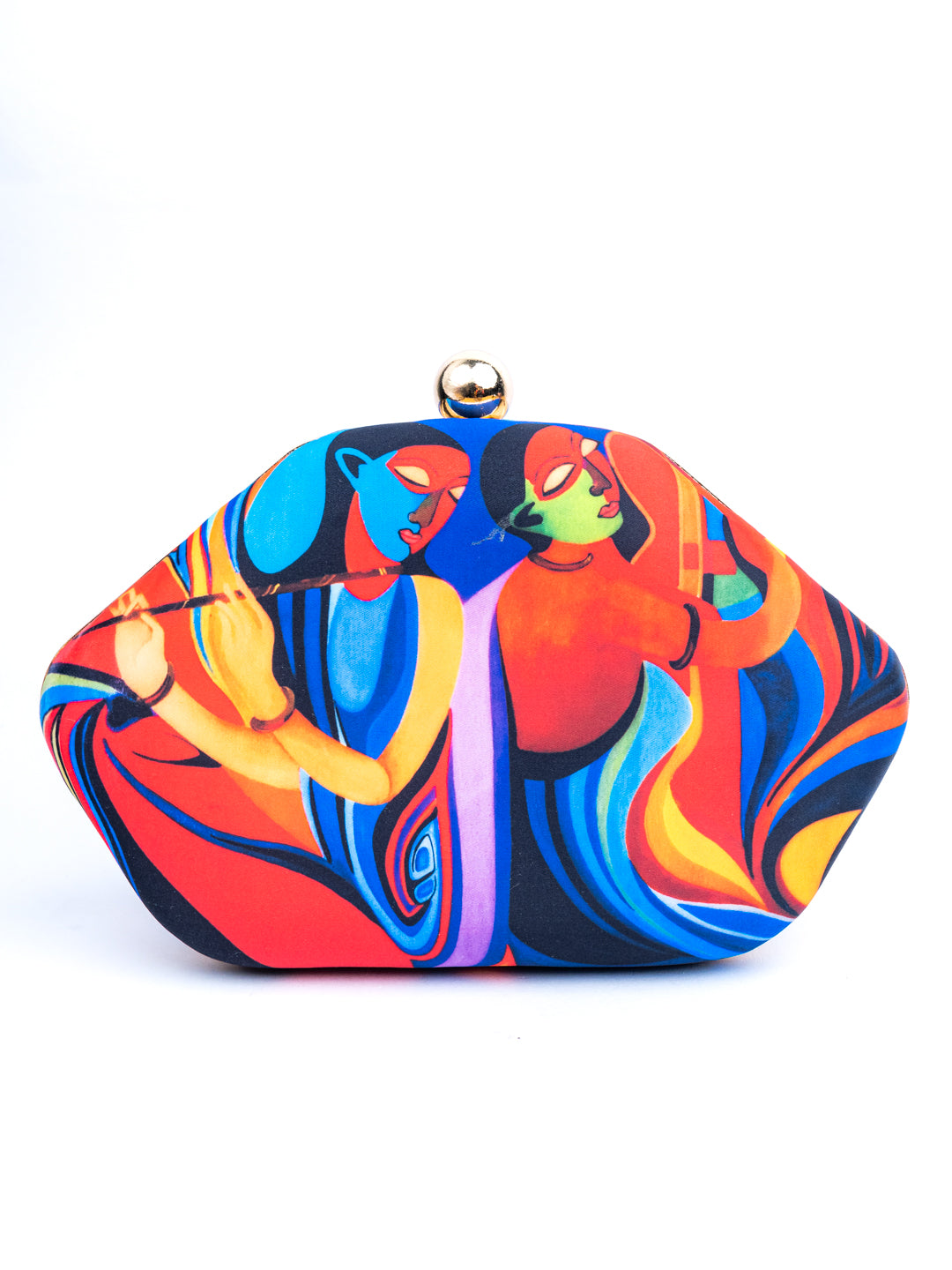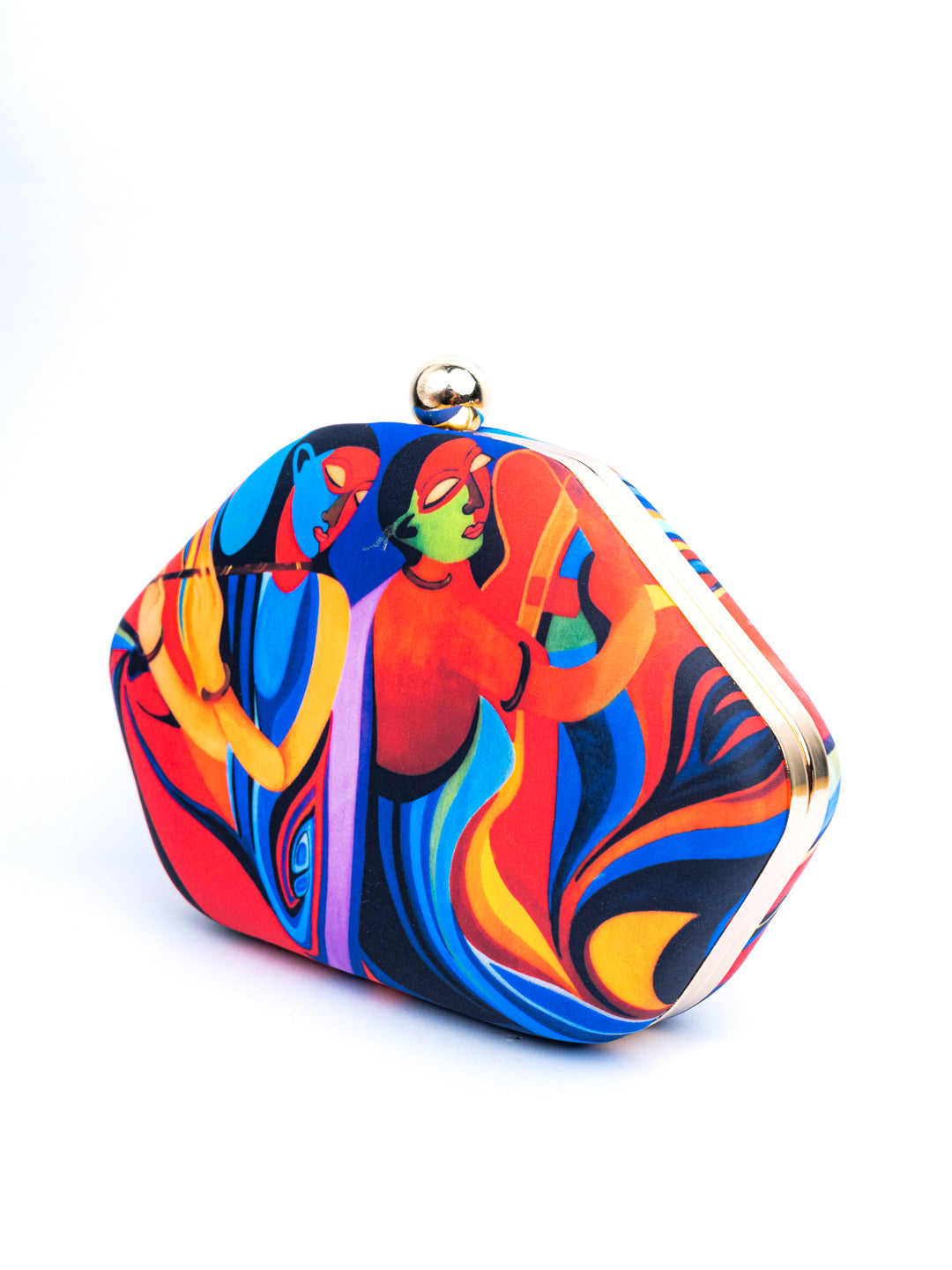 Orange & peach box clutch, digital printed in matt finish on both sides