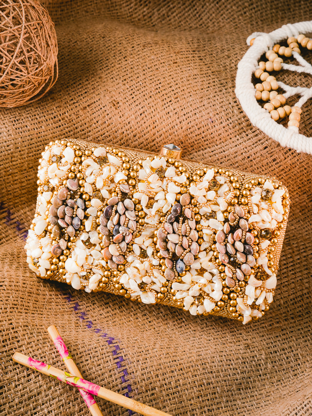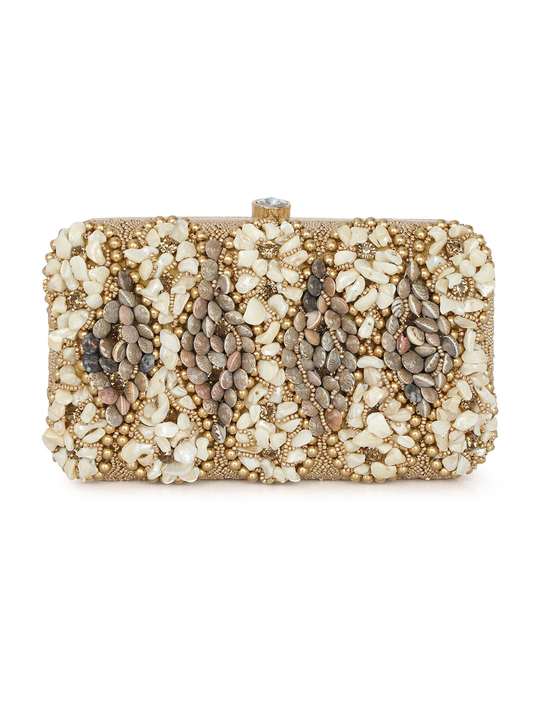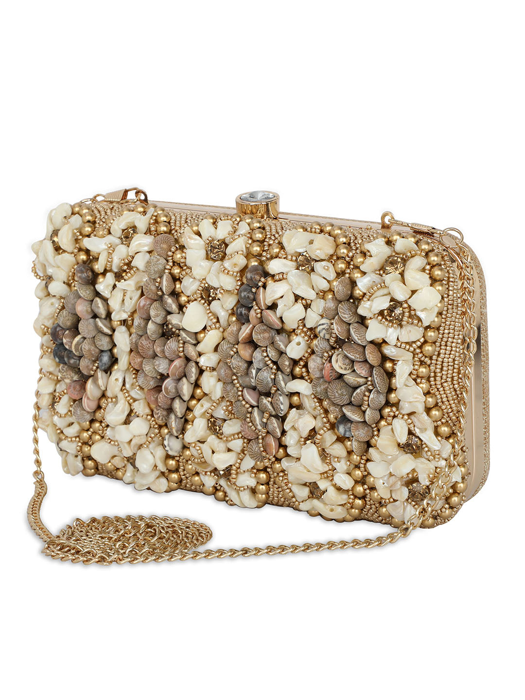 Coffret de fête brodé crème, avec 1 compartiment principal avec fermeture à vis