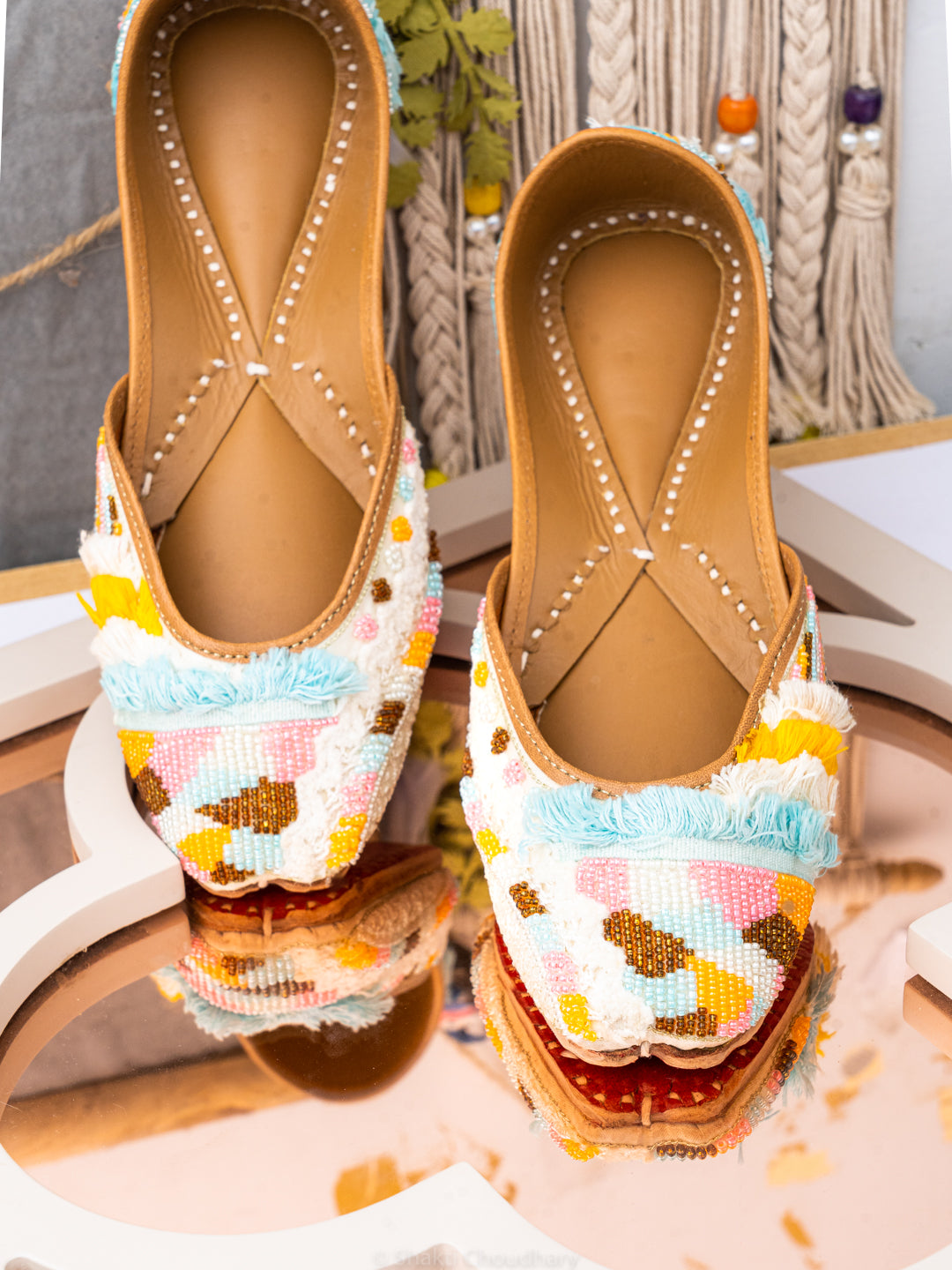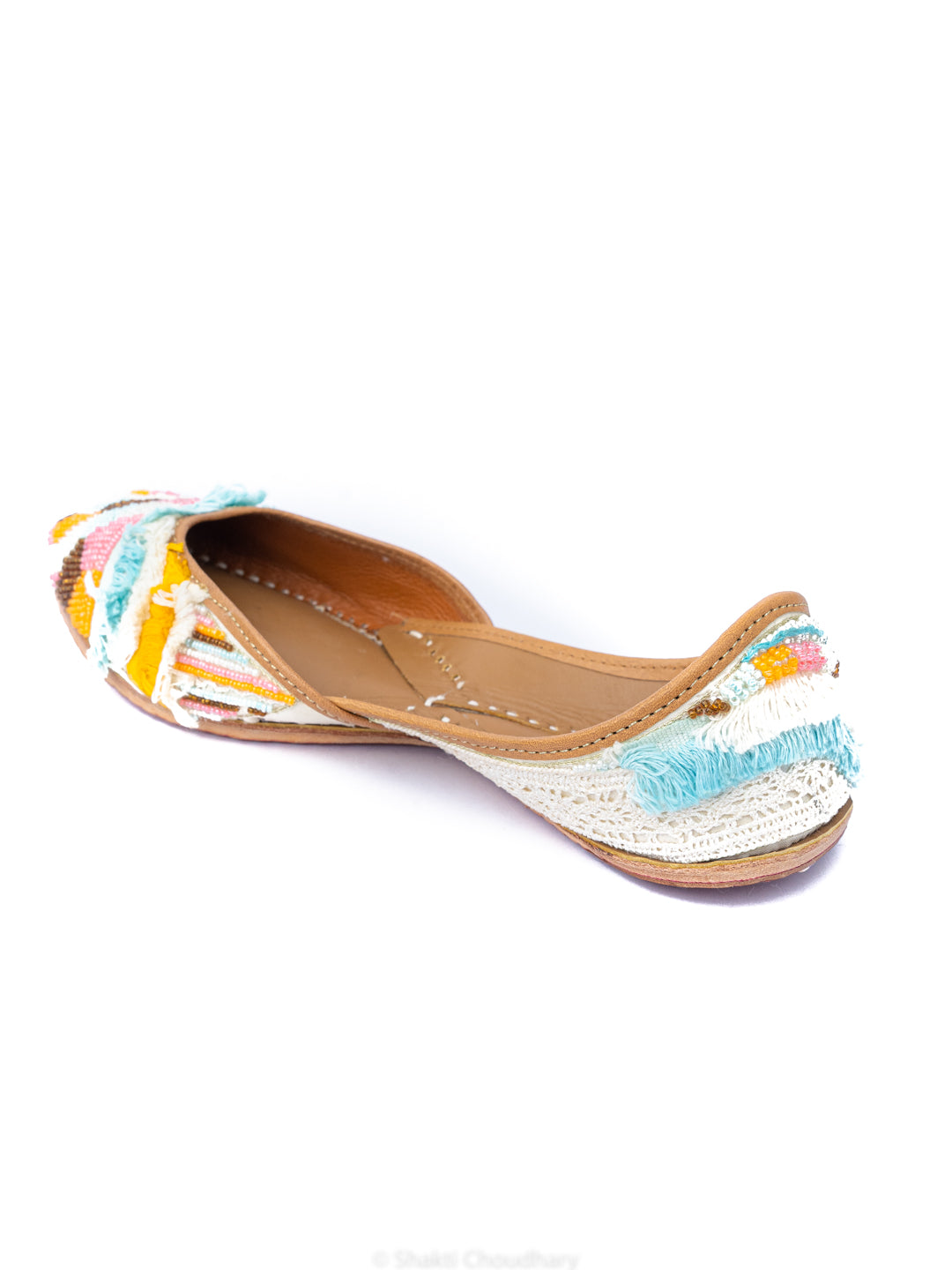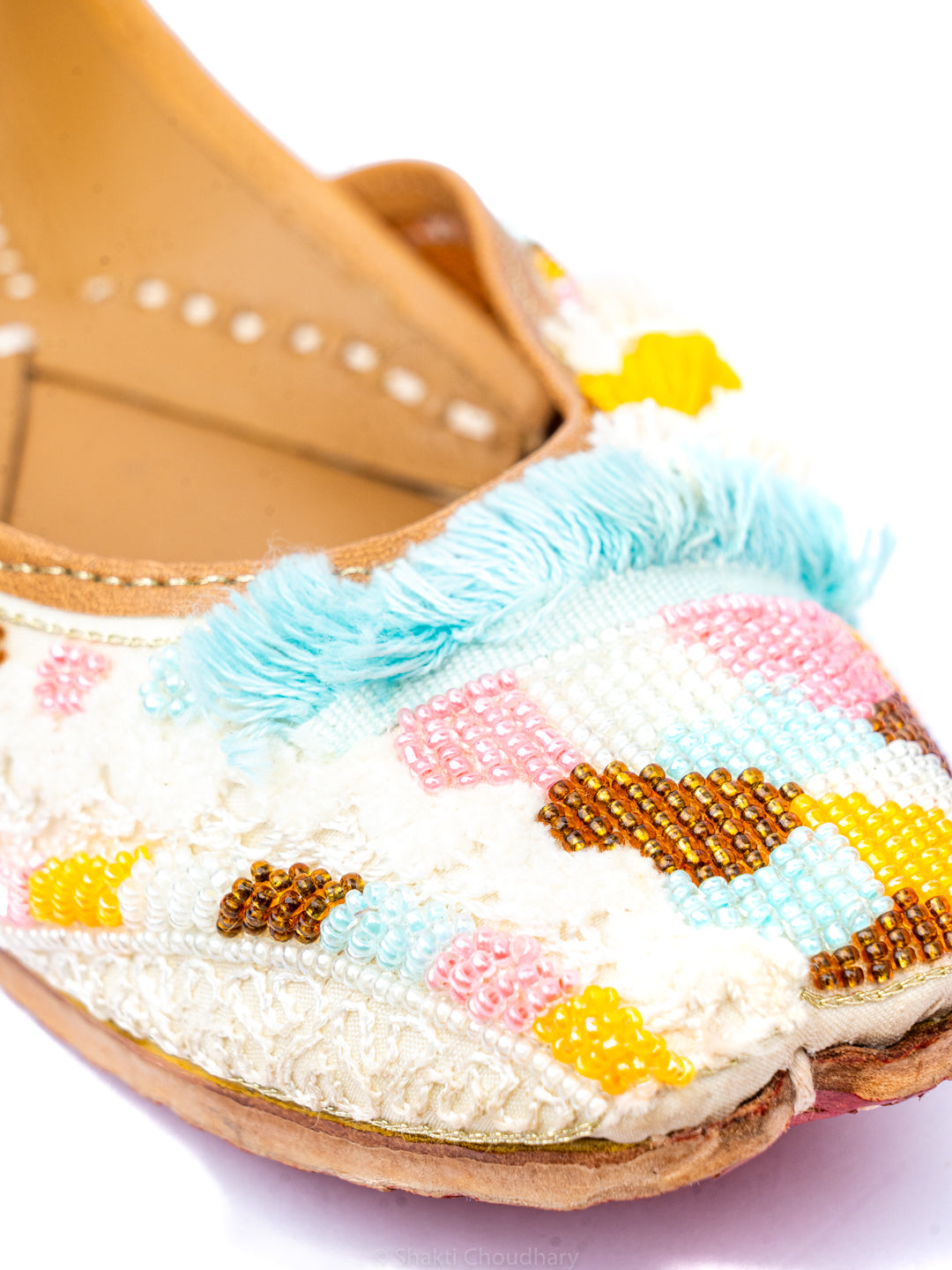 NR By Nidhi Rathi Mojaris Ballerines ethniques en cuir brodées à la main pour femmes blanches et roses