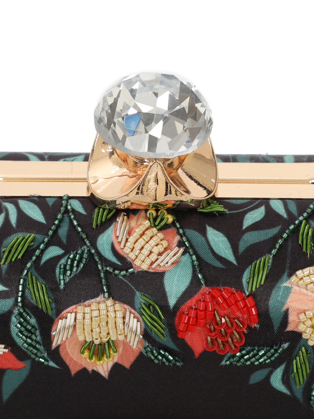 Black and red embellished box clutches, Has shoulder strap, 1 main compartment with click closure