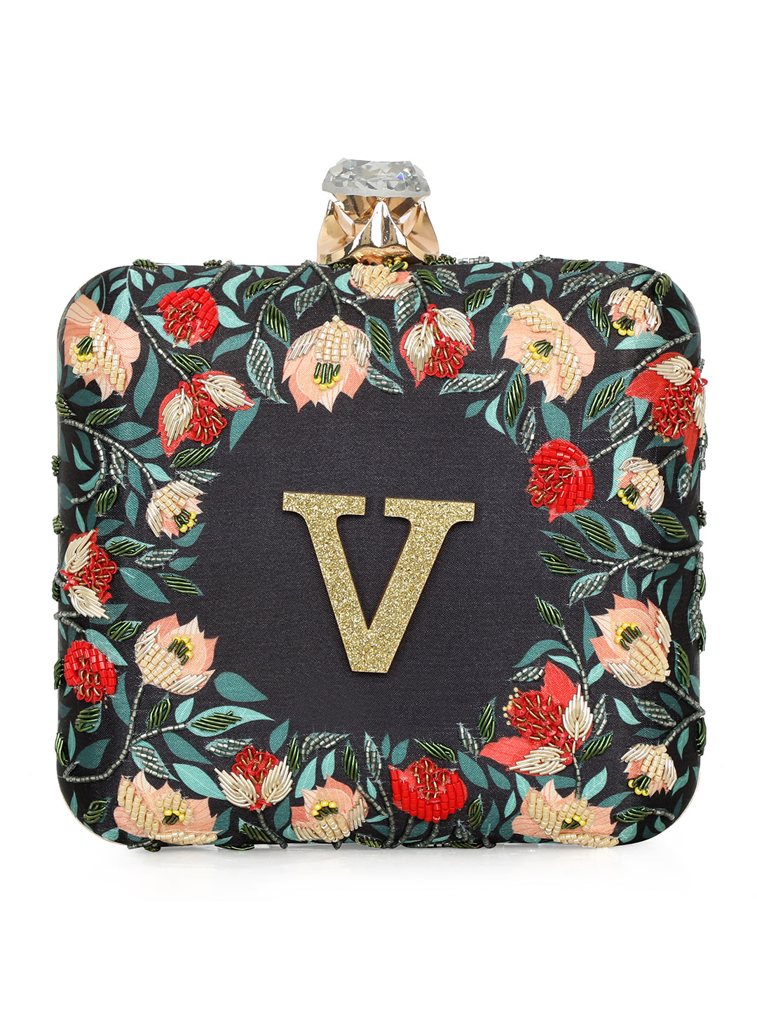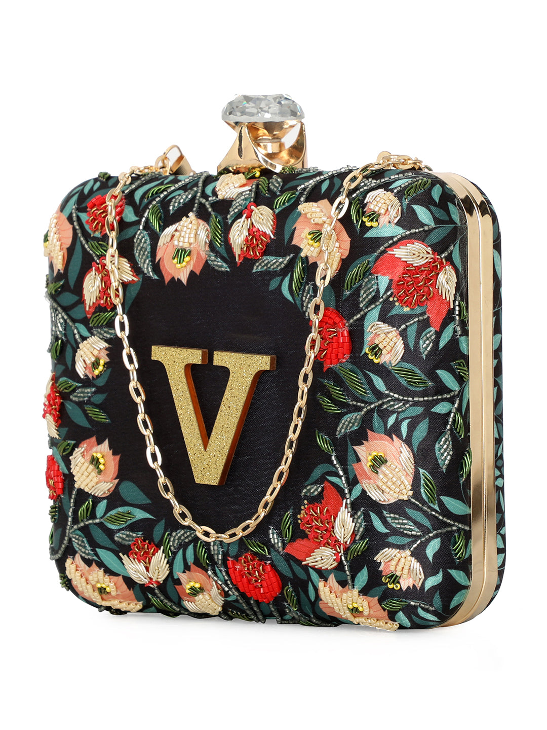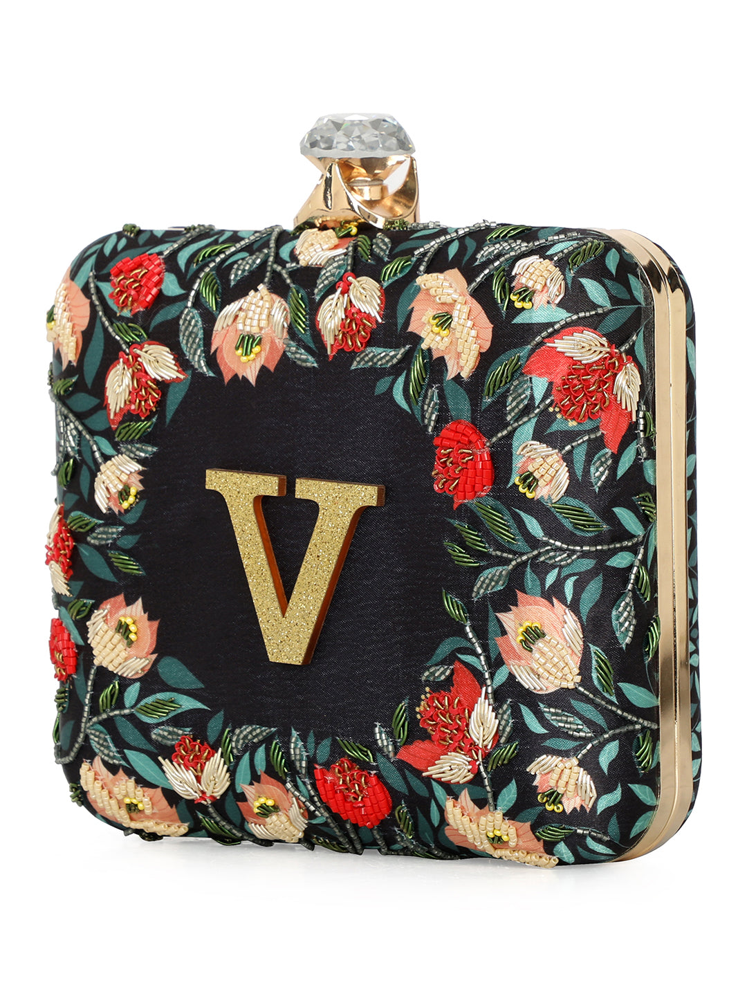 NR By Nidhi Rathi Black & Red Embellished Box Clutch