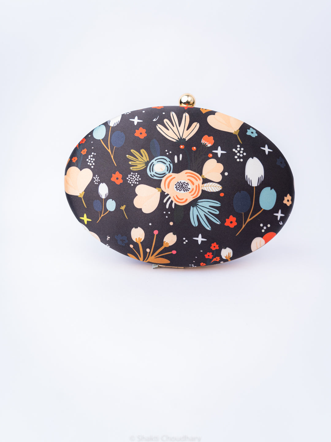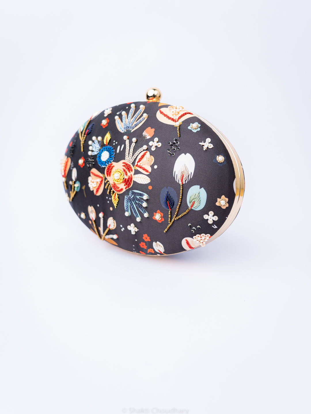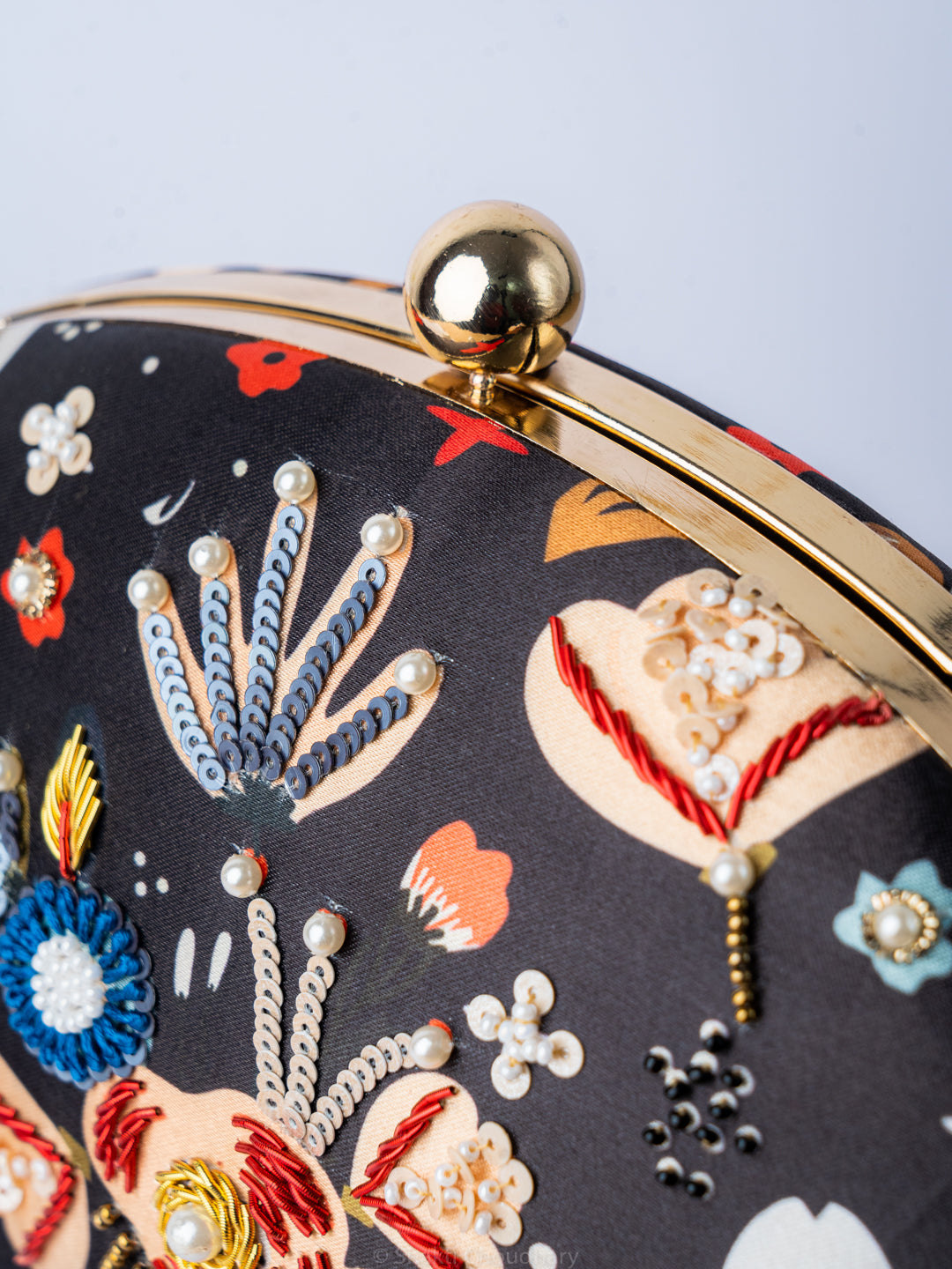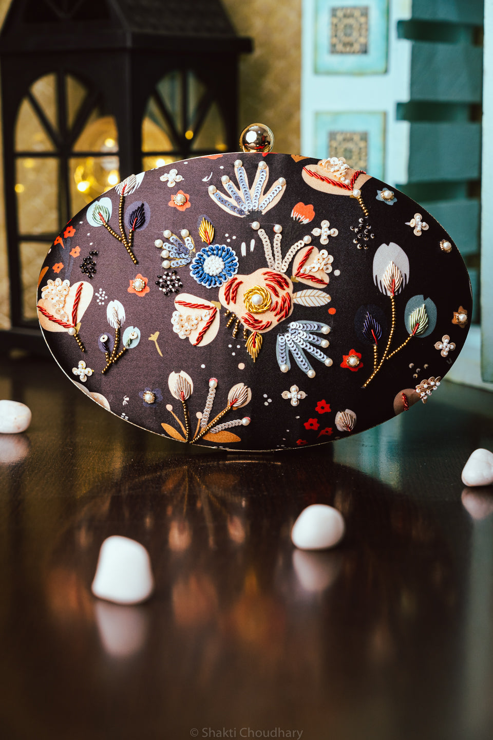 Brown and blue embroidered embellished box clutches Has, shoulder strap 1 main compartment with twist closure