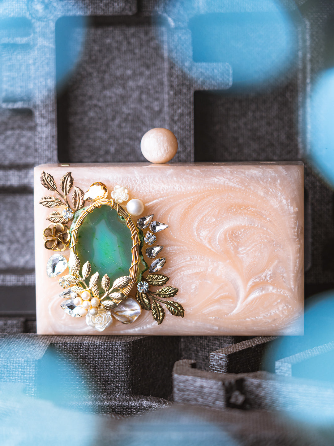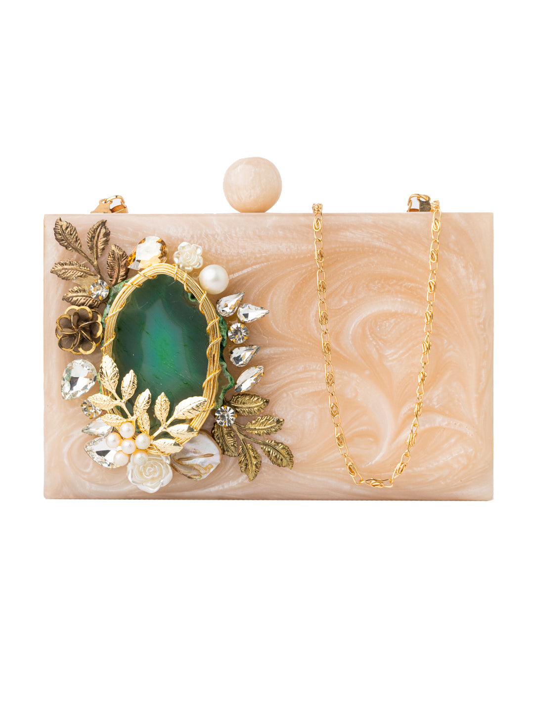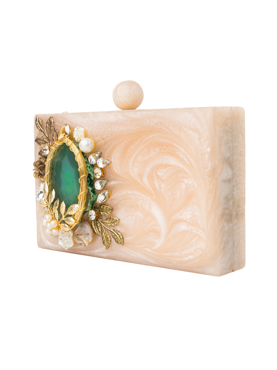 NR By Nidhi Rathi Pink Beige Embellished Box Clutch