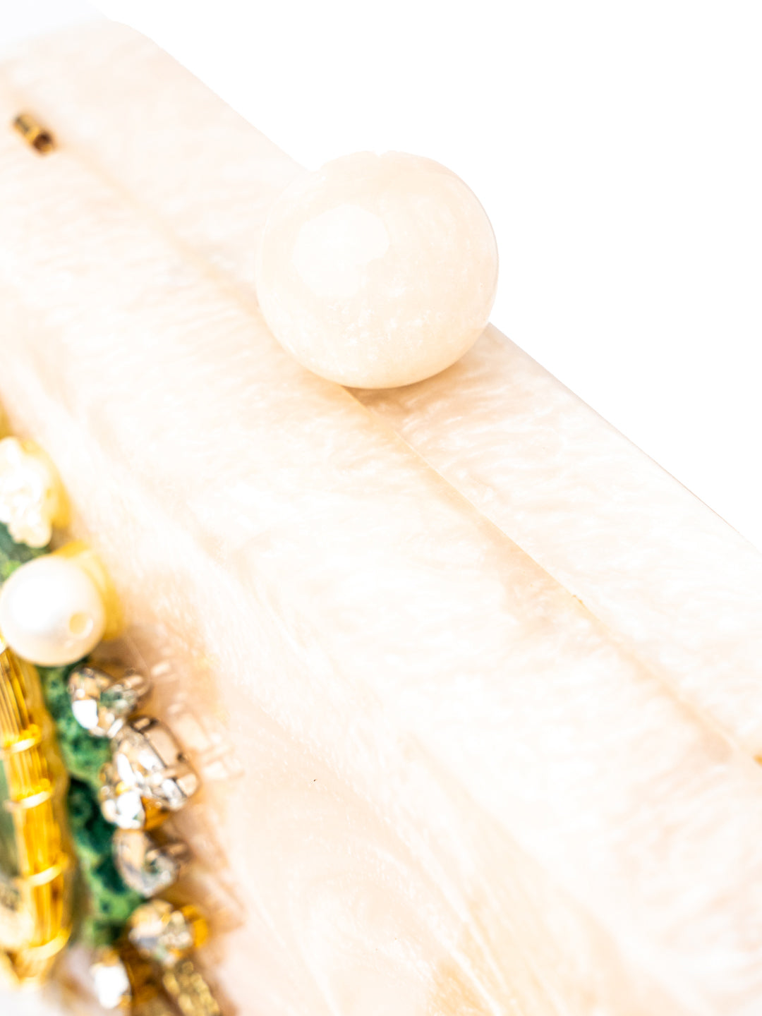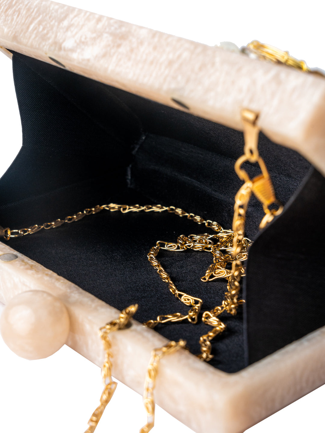 Pink and beige embellished box clutches, Has shoulder strap, 1 main compartment with twist closure